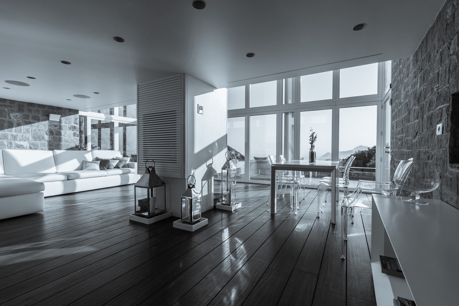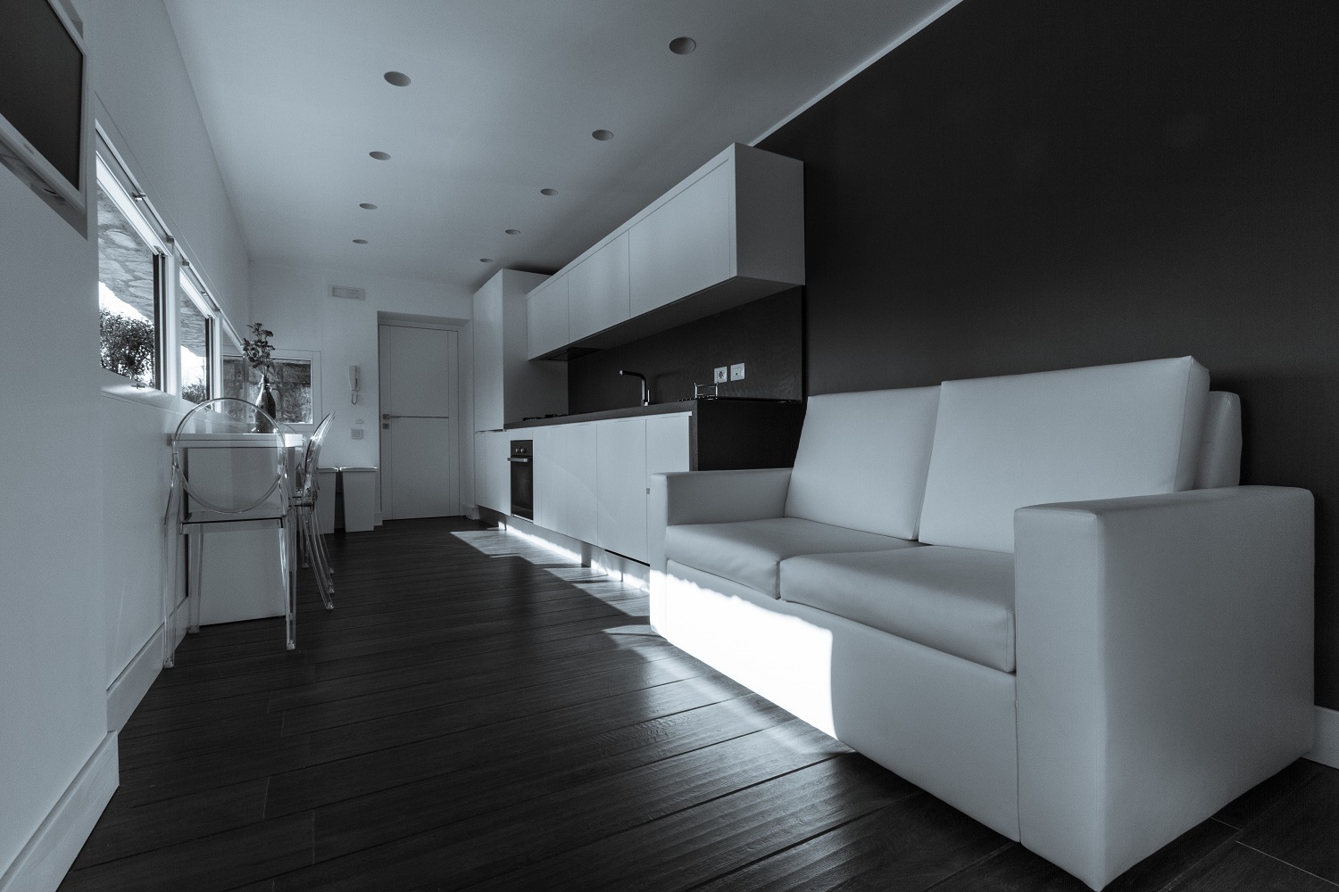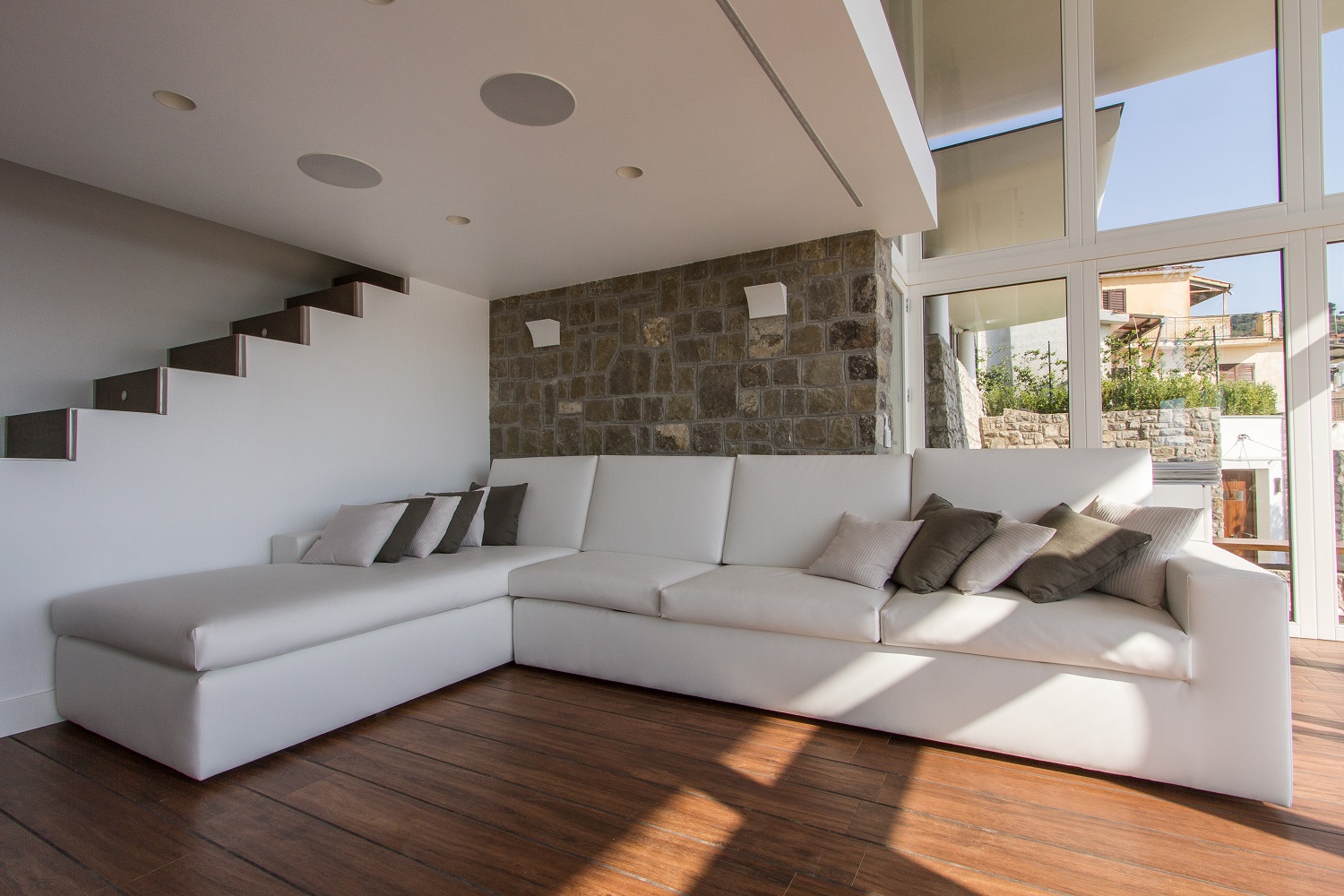 Villa Von Saurma's philosophy, based on elegance, well-being and comfort, finds one of its highest expressions in the Presidential Suite: large size, elegantly furnished, and with a breathtaking view of Capri Island. The 3 junior suites blend together for a common identity, with the white colour and a beautiful view on Capri as dominating factor. All suites are equipped with large bathrooms with shower, finished with fine materials. The kitchens of Villa Von Saurma, respectively located at the boundary of the first gazebo and on the pool and sun deck area, are fully equipped to offer all the comfort of a wonderful cocking experience. Villa Von Saurma living room is dominated by the presence of a central fireplace and a comfortable sofa, and has a table that can accommodate up to 12 diners. The integrated audio/video system and the quality of acoustic technology used, make this room ideal for a party. |