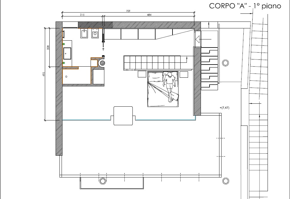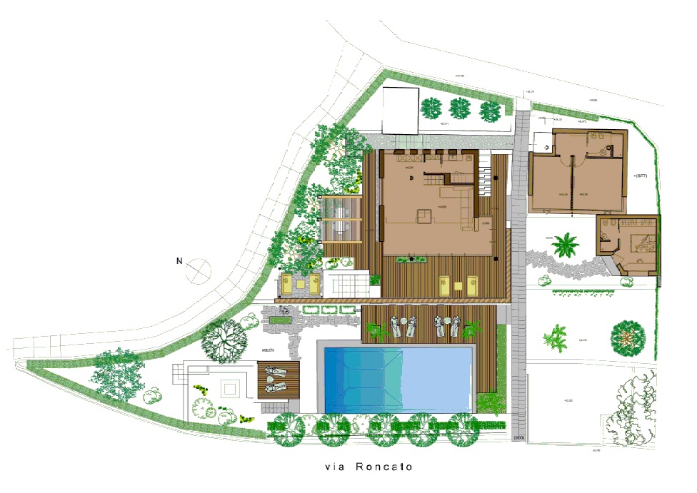 Located 300 meters above sea level and on a terraced terrain with steep slopes, the villa consists of 4 housing building. The two main units are characterized by white cement roofing, staggered between them and each supported by four columns of reinforced concrete with the joint support of bronze inverted cone. The set is intersected by a lava stone stairway that serves as a link between the two spaces.